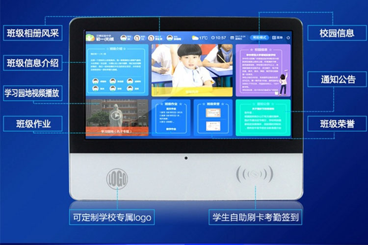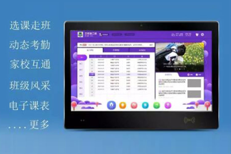 電子班牌正是智慧教室的載體,它不再是傳統(tǒng)意義的“班牌”,它是一款集觸摸屏技術(shù)、RFID技術(shù)、多媒體技術(shù)、智能云終端軟件技術(shù)、云平臺技術(shù)為一體的綜合信息終端,為學生課堂教育的主要場所和環(huán)境打造了一個展示窗口和互動平臺。它有助于解決學生缺席選修課程這一問題,是學校校園安全工作的重要項目,是“走班制”實行后學校急需的教育教學工具;通過色彩鮮艷、友好的人機交互界面向?qū)W生傳達校園文化、集體榮譽、個人風采,將豐富的、健康的、陽光的課余氛圍層層遞進,深入人心,對學校德育工作、減負工作均起到積極有效的作用。